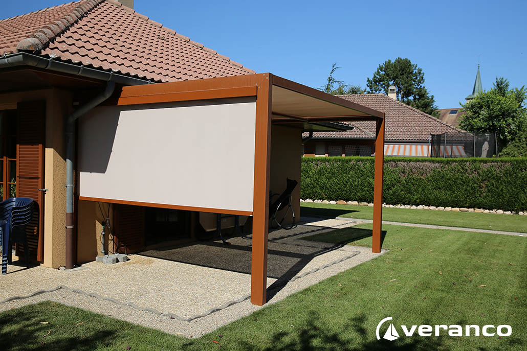 Disponible également en version autoportante, toiture positionnable à plat ou en pente, et pouvant accueillir des screens verticaux, des spots et des détecteurs de pluie ou de vent, vous n’aurez que l’embarras du choix pour créer votre nouvel espace de détente. La télécommande rend la manipulation du screen très aisée.